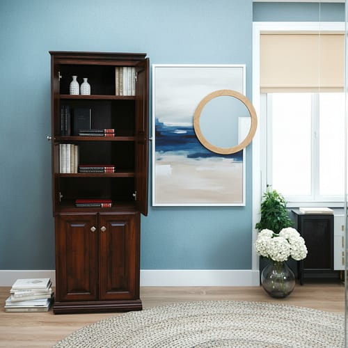 • For your office, bedroom, living room, or anywhere you want to openly display your finest books, collectibles, or other memorabilia in a Traditional-style, our BK7 Series, with its adjustable shelving and multi-Standard size availability, will be your simple or larger storage solution. Mix or match to meet your needs! Traditional BK7 options include: Available in Oak or Alder. 5 Standard sizes with 5 adjustable shelves. 15 Superior Sherwin-Williams stain and finish selections. 22 Hardware choices. 72" H and above are made to be part of our Entertainment Walls & Office Systems. ODC Products. Where quality matters.