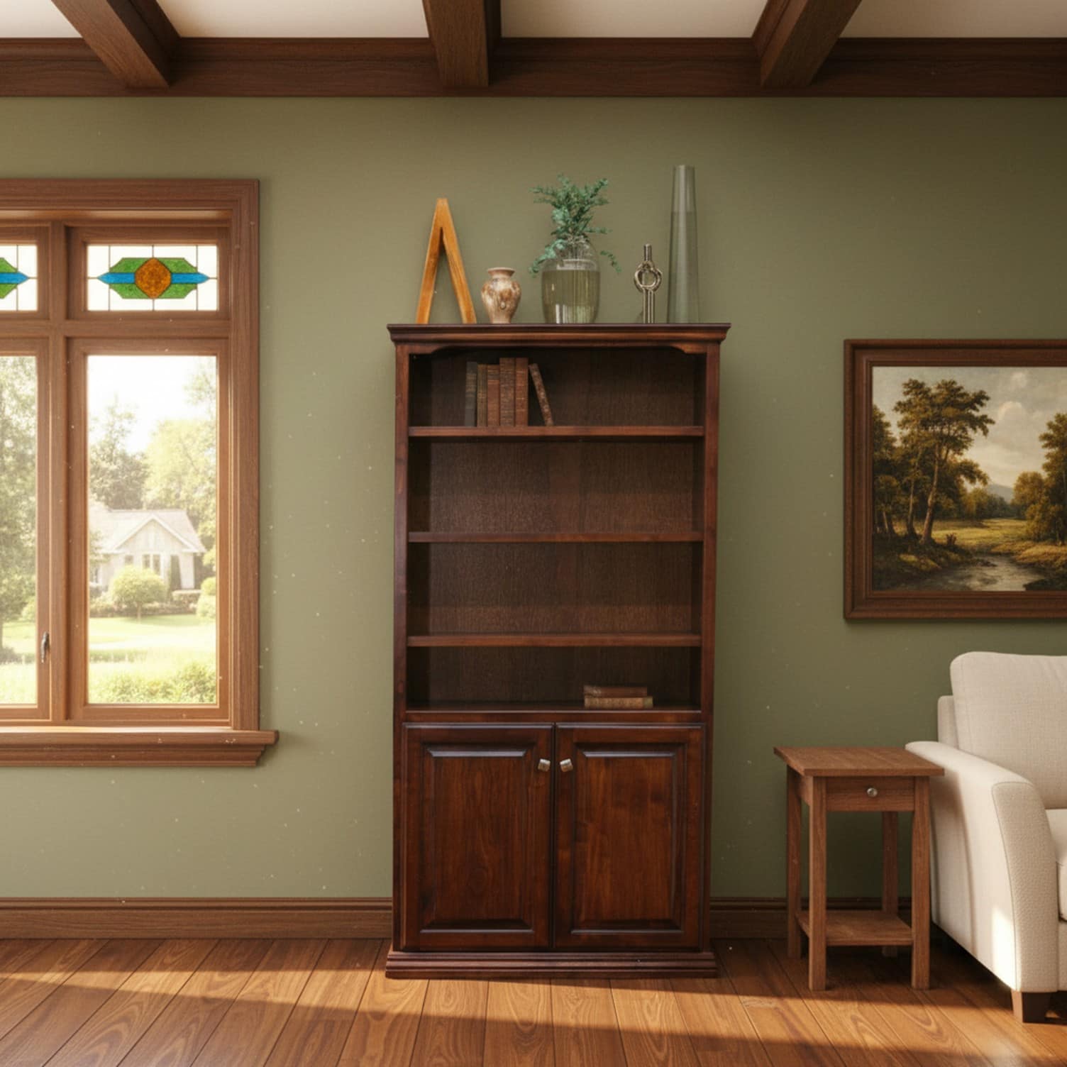 Traditional BK5 30″ W x 72″ H 4-Shelf 2-Door Wood Library Bookcase