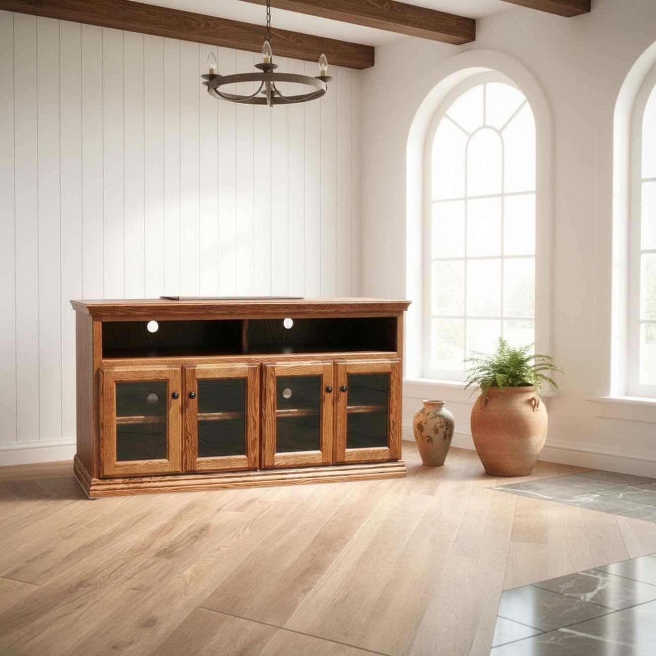 Designed to be that focal point for your display, media devices, storage, and ready for any room in your home with two open spaces and two cabinets, our Traditional-style CN4 Series, with its adjustable shelving and multi-Standard size availability, will be that solution. Mix or match to meet your needs!