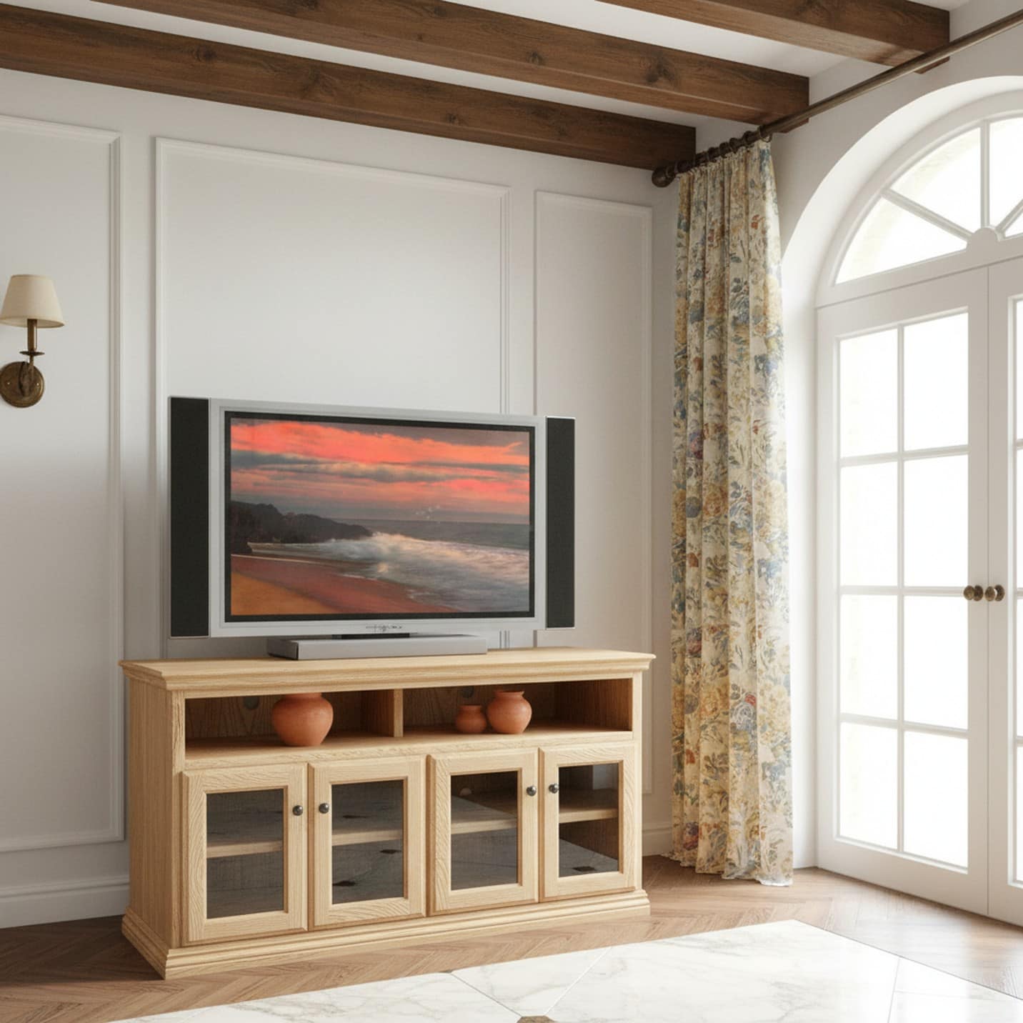 Traditional CN4 58″ W x 30″ H 2-Cabinet Wood TV Soundbar Media Console