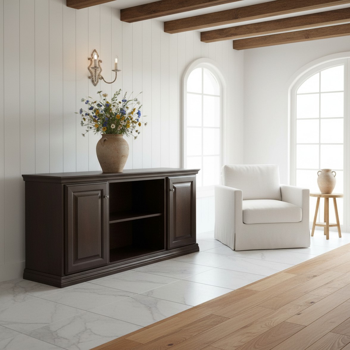 Designed to be that focal point for your display, media devices, storage, and ready for any room in your home with two cabinets for hidden storage and a center cubby for items with easy accessibility, our Traditional-style CN6 Series, with its adjustable shelving and multi-Standard size availability, will be that solution. Mix or match to meet your needs!