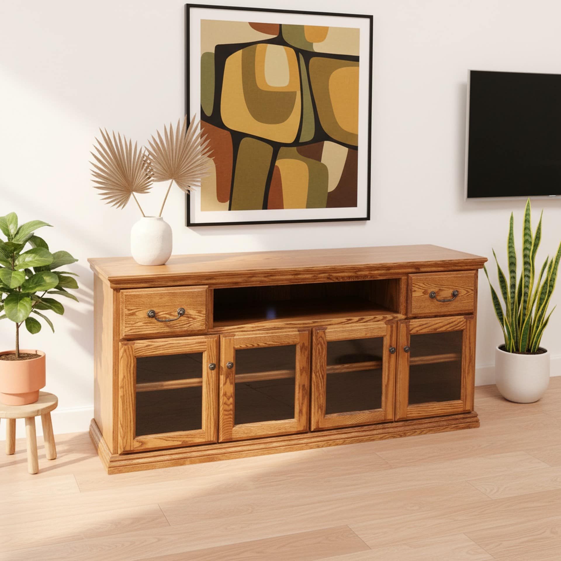 Traditional CN7 63″ W x 36″ H 2-Drawer 2-Cabinet Wood TV Soundbar Media Console