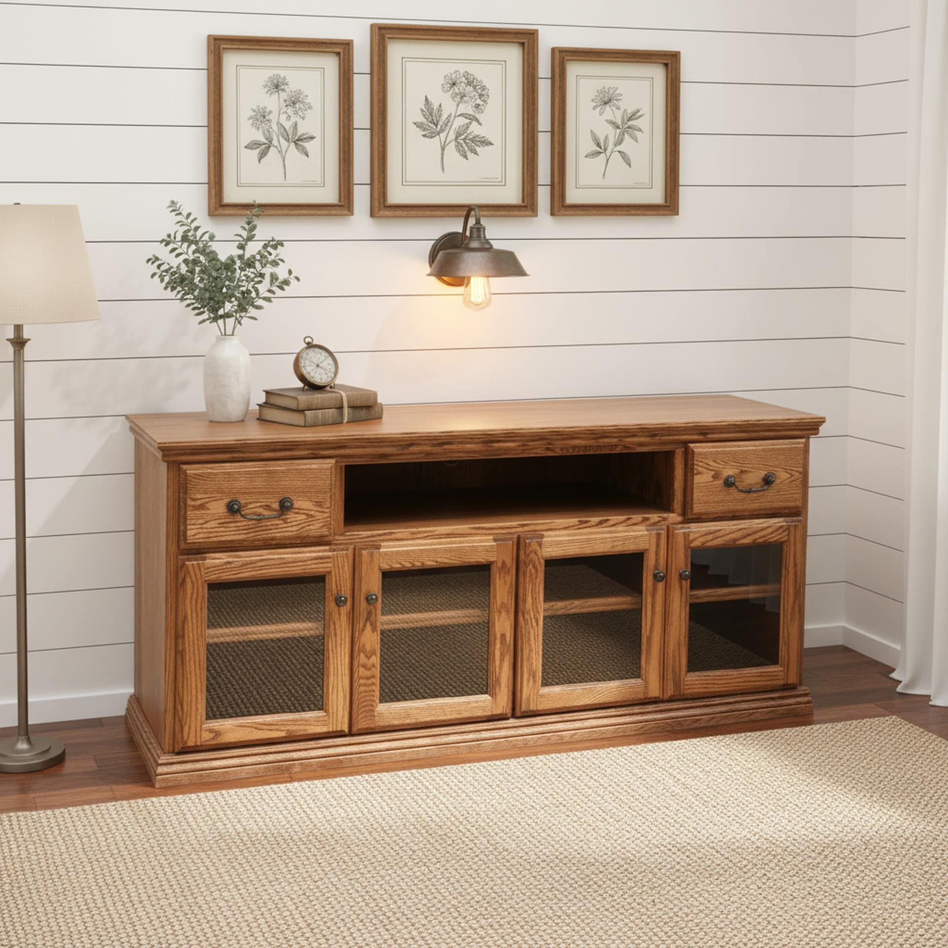 Traditional CN7 68″ W x 30″ H 2-Drawer 2-Cabinet Wood TV Soundbar Media Console