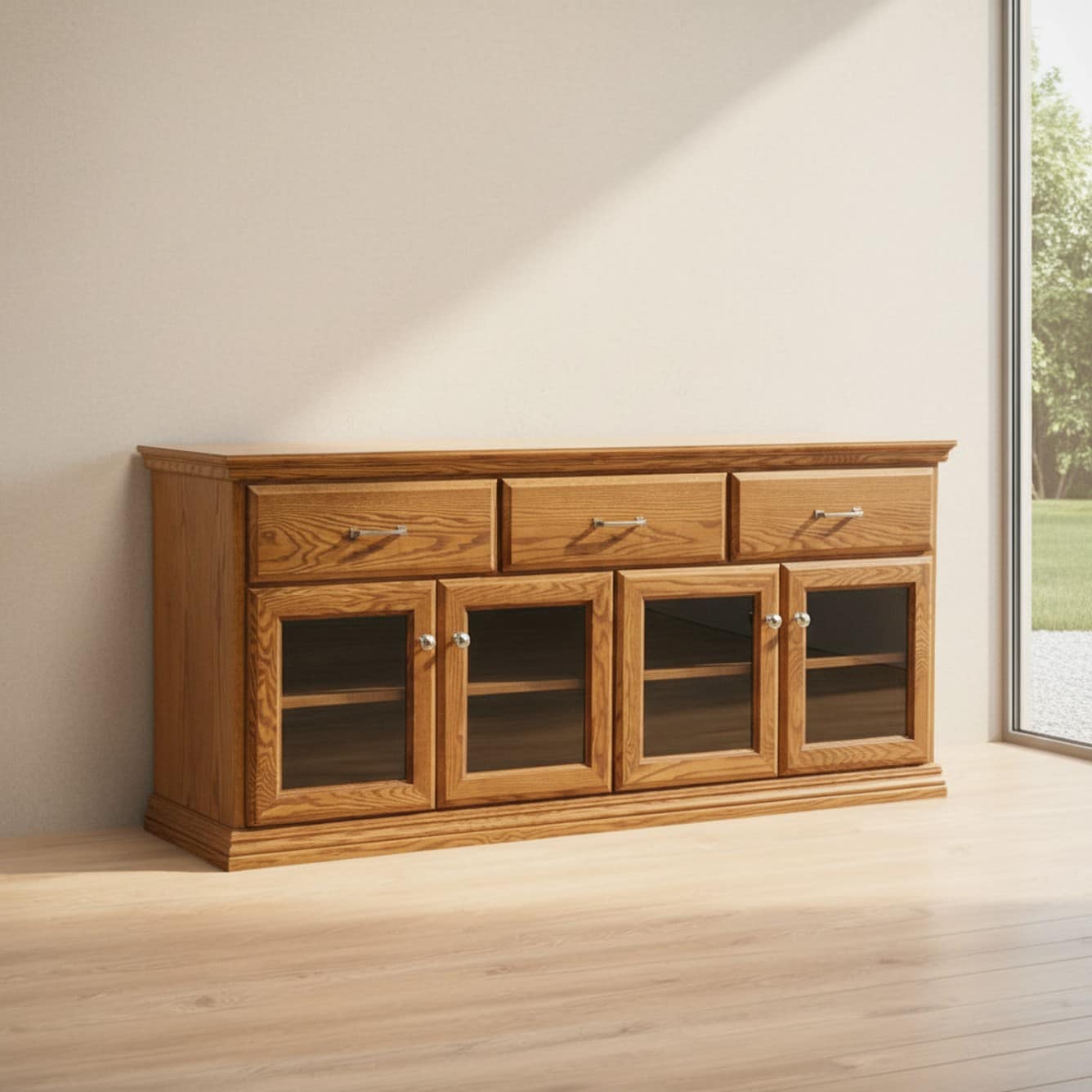 Traditional CN8 68″ W x 36″ H 3-Drawer 2-Cabinet Wood Entertainment Media Storage Center