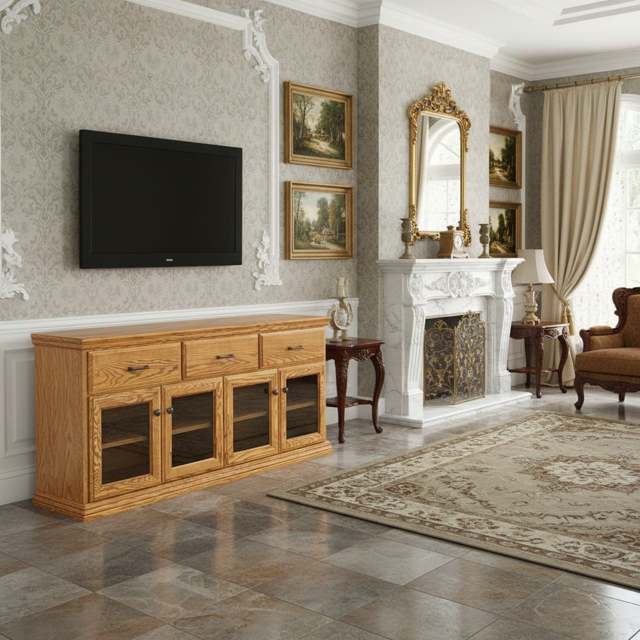 Traditional CN8 73″ W x 30″ H Entertainment Media Storage Center Highlights