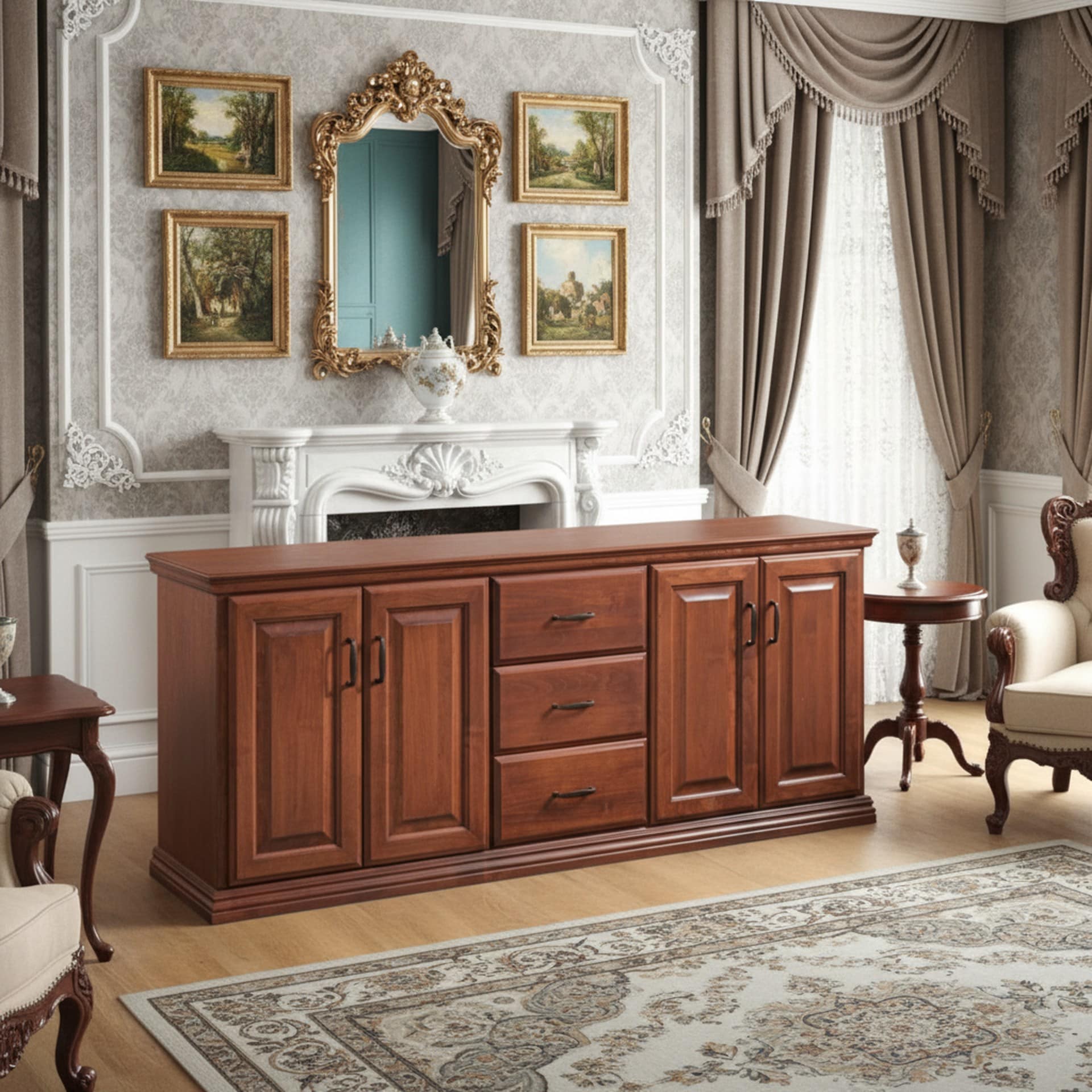 Traditional CN9 68″ W x 30″ H 3-Drawer 2-Cabinet Wood Entertainment Media Storage Center