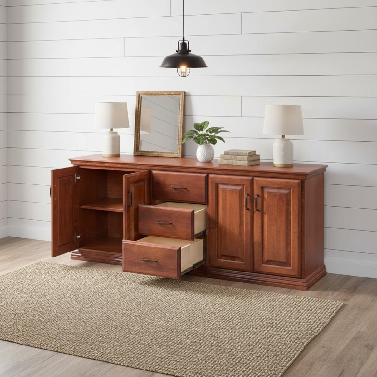 Traditional CN9 68″ W x 36″ H 3-Drawer 2-Cabinet Wood Entertainment Media Storage Center