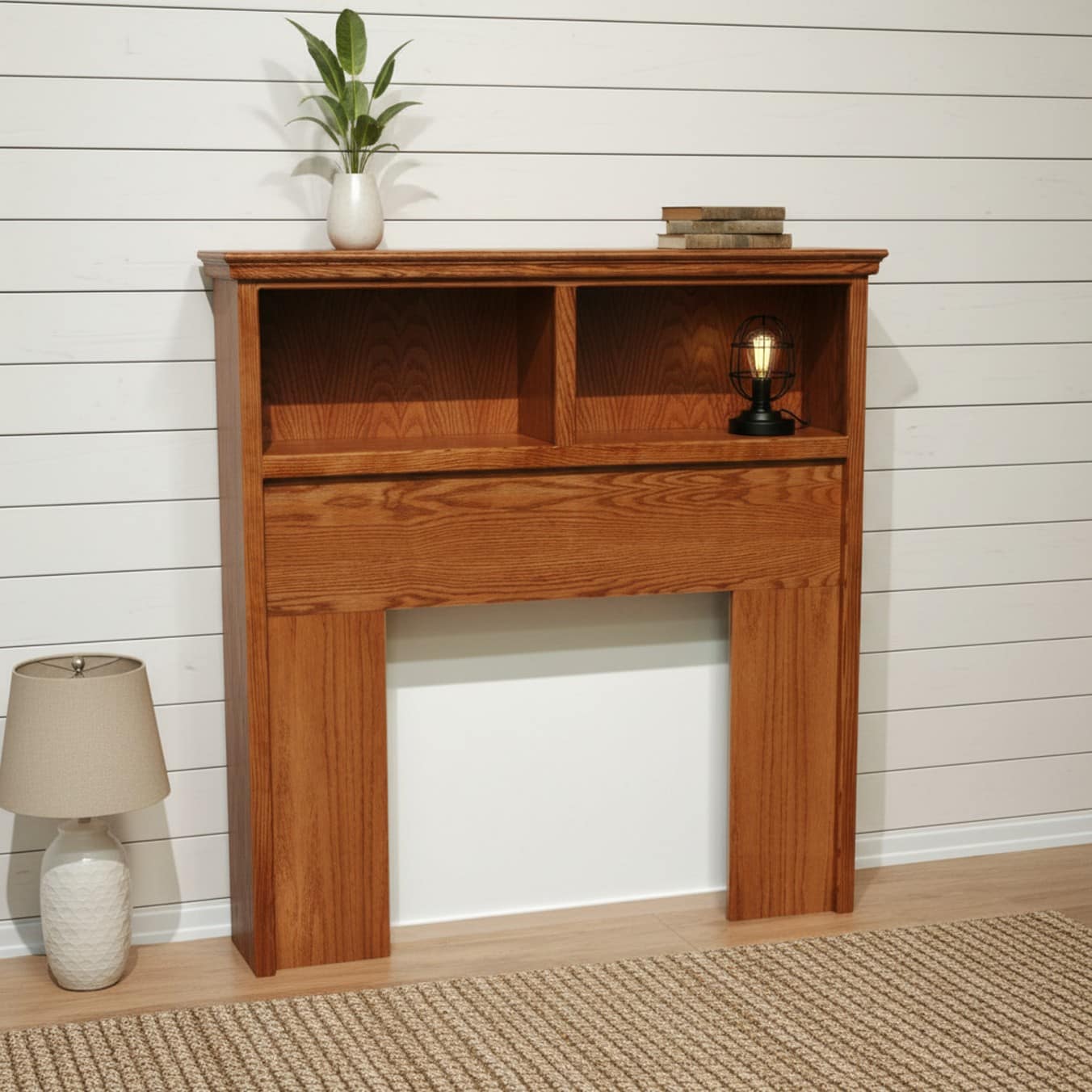Standalone 46″ high headboard with two open bookcase cubbies