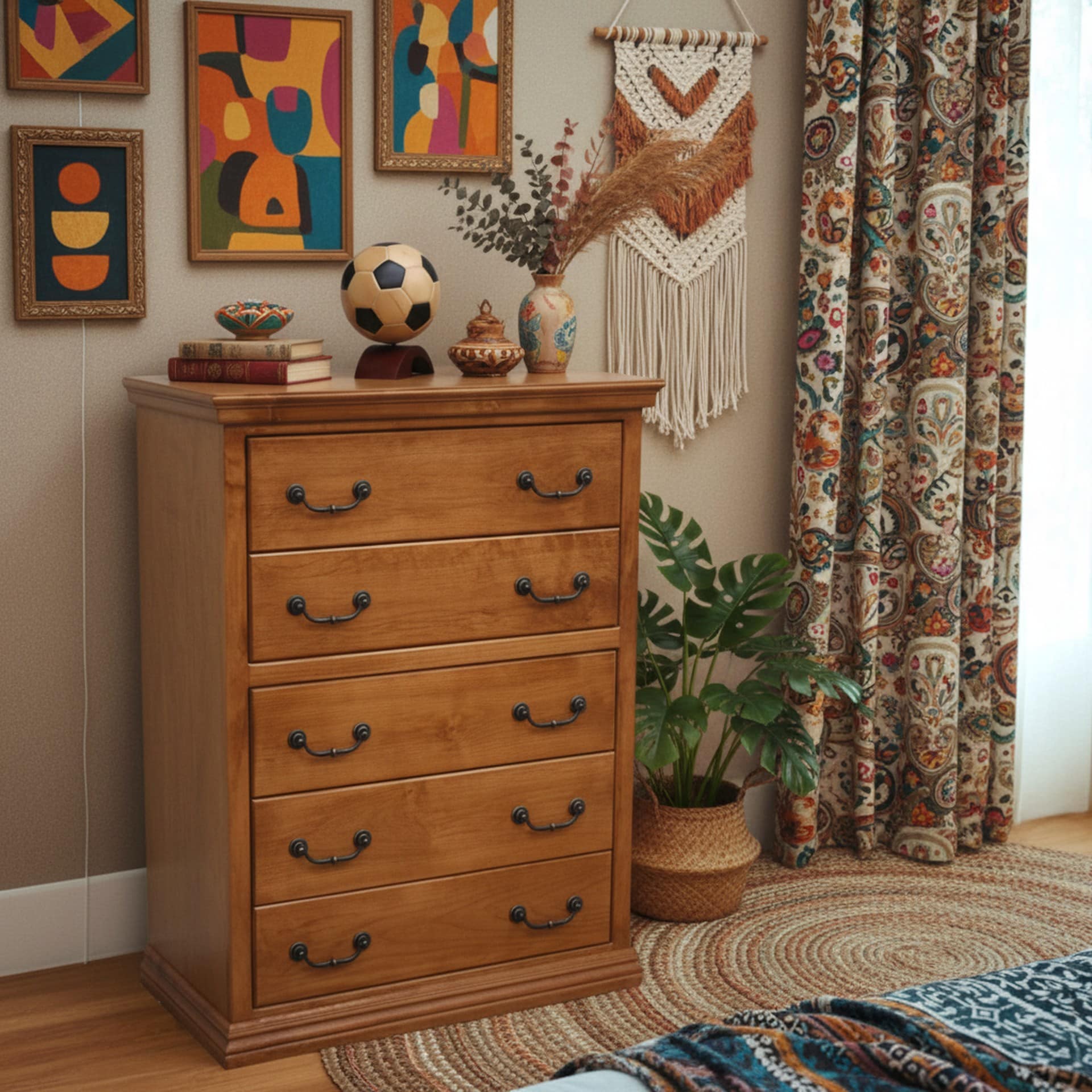 • Dresser has 5 full extension slide drawers