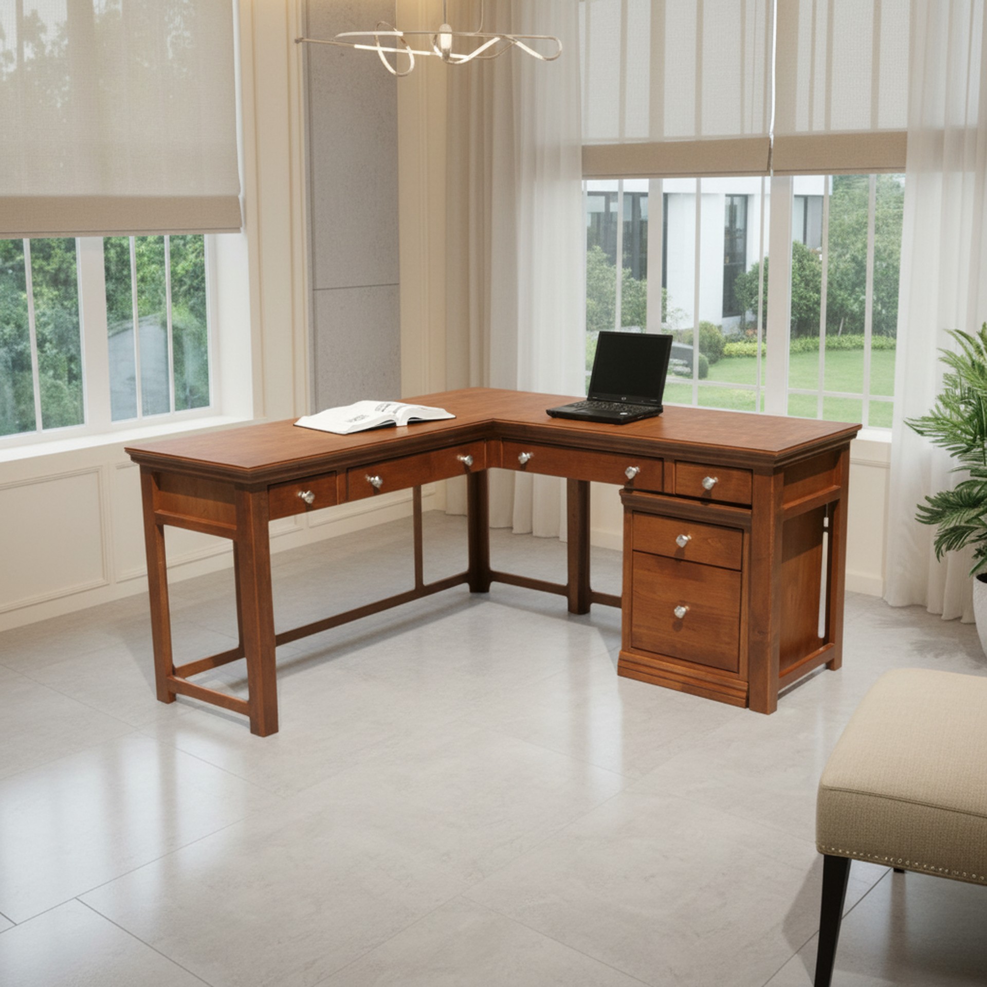 Traditional T371-D 60″ W x 22″ D x 30″ H L-Shaped Laptop Writing Table Highlights