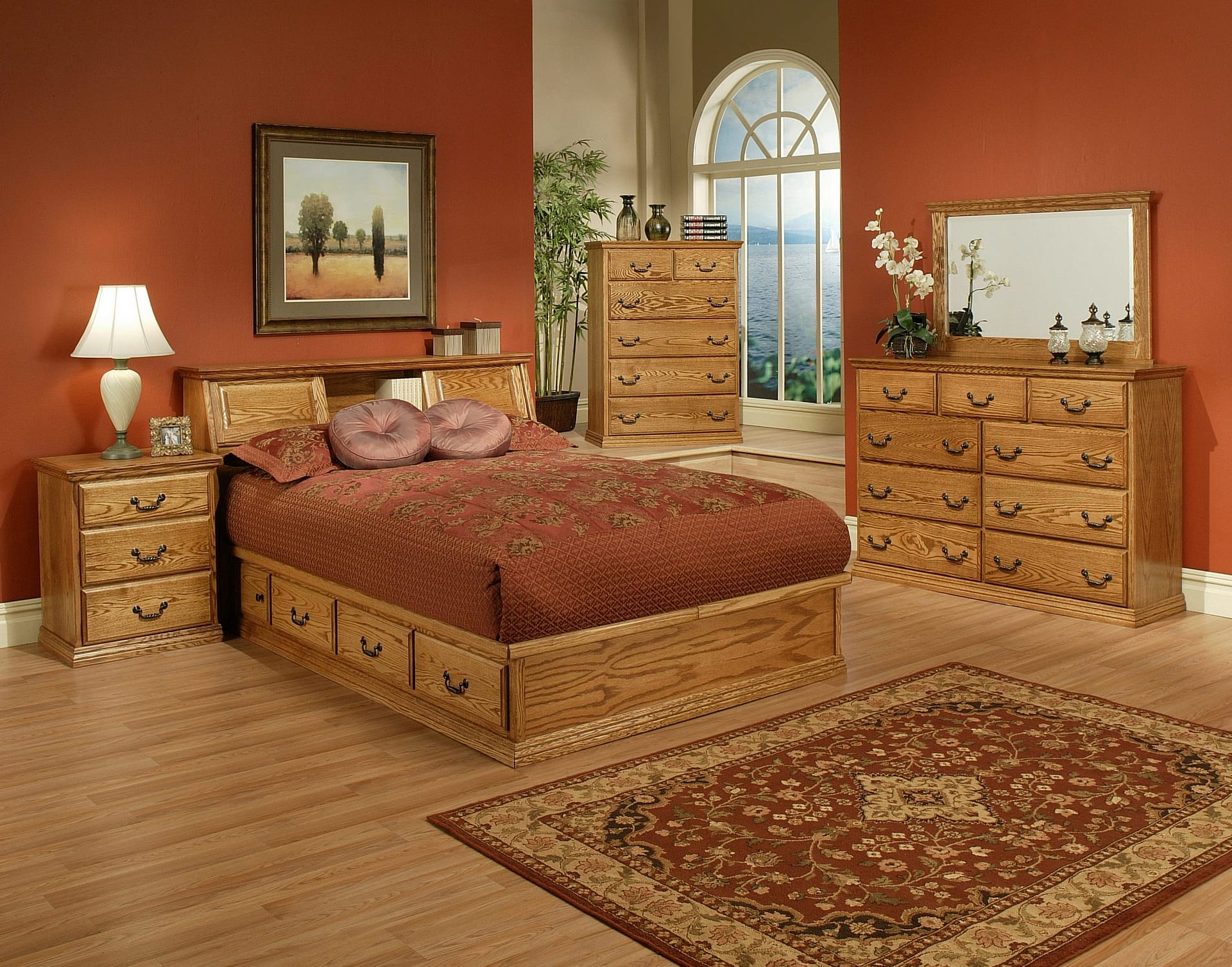 See the Companion Items tab for information about the Angled Headboard, Dressers, and Nightstand shown in the photo